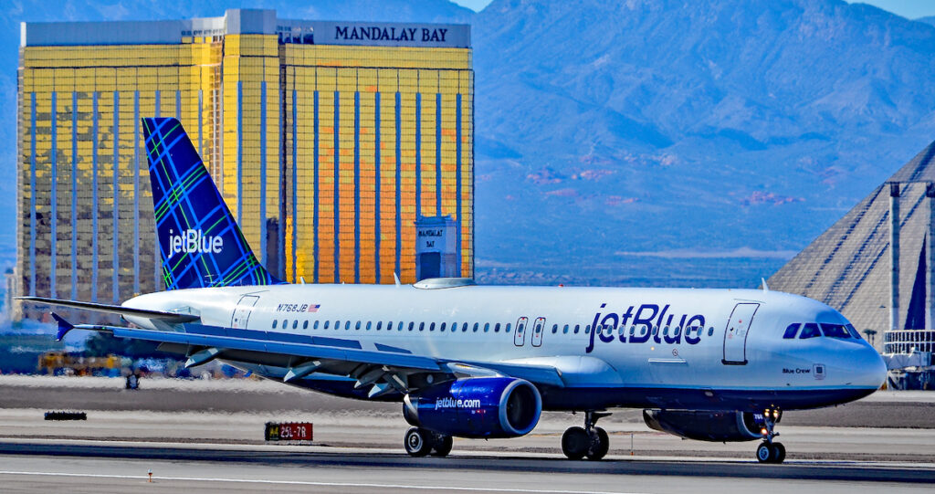 A JetBlue Airbus A321 takes off from McCarran International Airport in Las Vegas. Photo: Tomás Del Coro