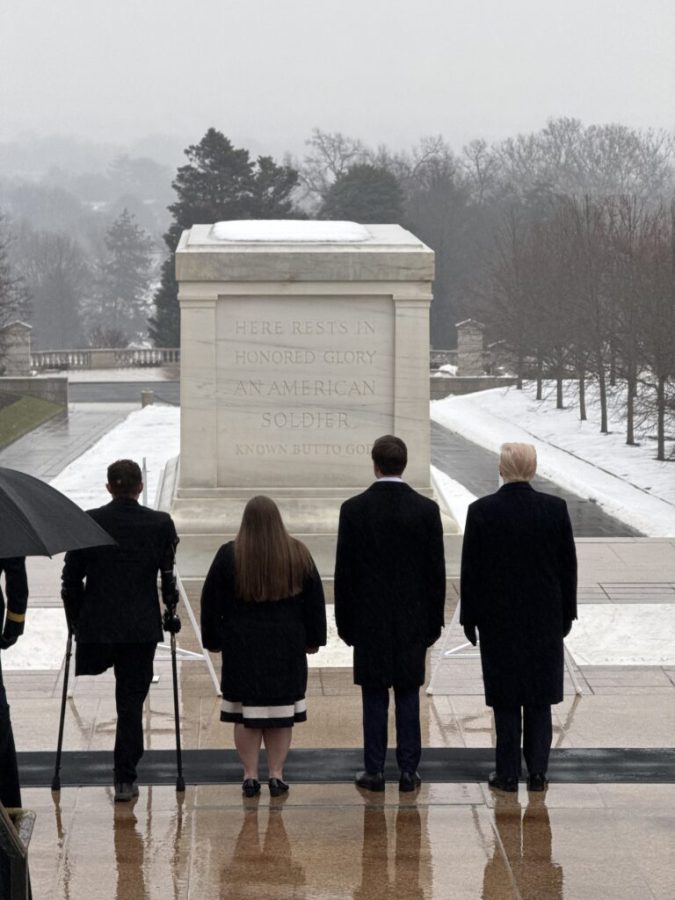 The president-elect’s motorcade arrived at Arlington National Cemetery shortly after 1:30 p.m. Eastern Time after he and his family arrived in Virginia on Saturday night. He was joined by Vice President-elect Vance and his wife, Usha, who arrived shortly beforehand.