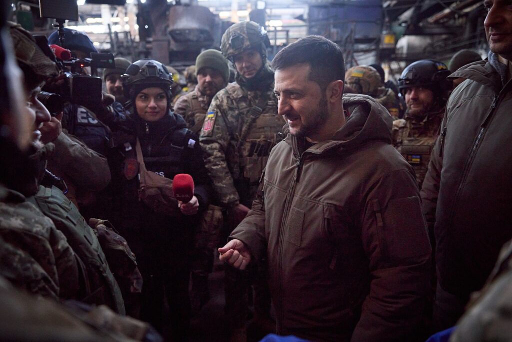 Ukrainian President Zelensky meets with troops along the Bakhmut front in December 2022