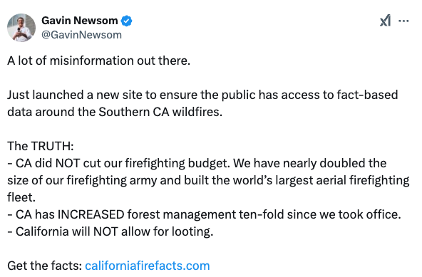 The decision to conflate disaster relief with political fundraising has sparked outrage across the aisle. While Newsom’s defenders insist his intentions are pure, the optics of using a disaster to funnel donations into political coffers are hard to ignore. In the end, Californians are left to wonder whether their governor is prioritizing their safety—or his next campaign. Fox News discovered that Californiafirefacts.com debunks several “lies” circulated on social media and by the media. The website presents counterpoints labeled as “facts” from Newsom, concluding with a donation button at the bottom of the page.