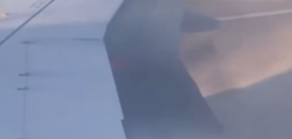 In the video, a flight attendant can be heard asking for passengers to remain in their seats. “No, it’s on fire!” one of the passengers shouted back.