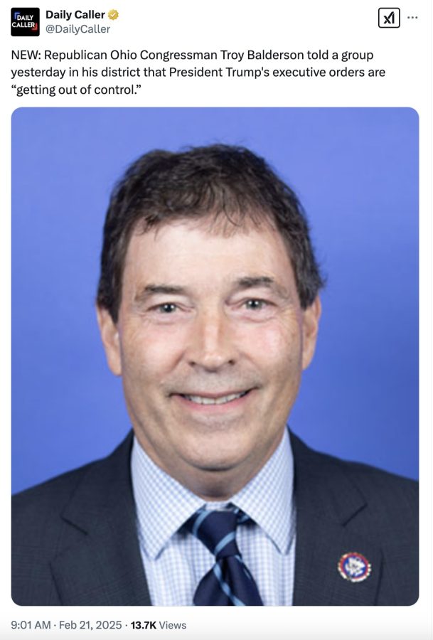 Rep. Troy Balderson (R-OH), who has served in the U.S. House since winning his first election in 2018, described President Trump’s litany of executive orders as “getting out of control” during a Westerville Area Chamber business luncheon. He couched his remarks in terms of constitutional authority, saying only Congress has the power of the pursestrings.